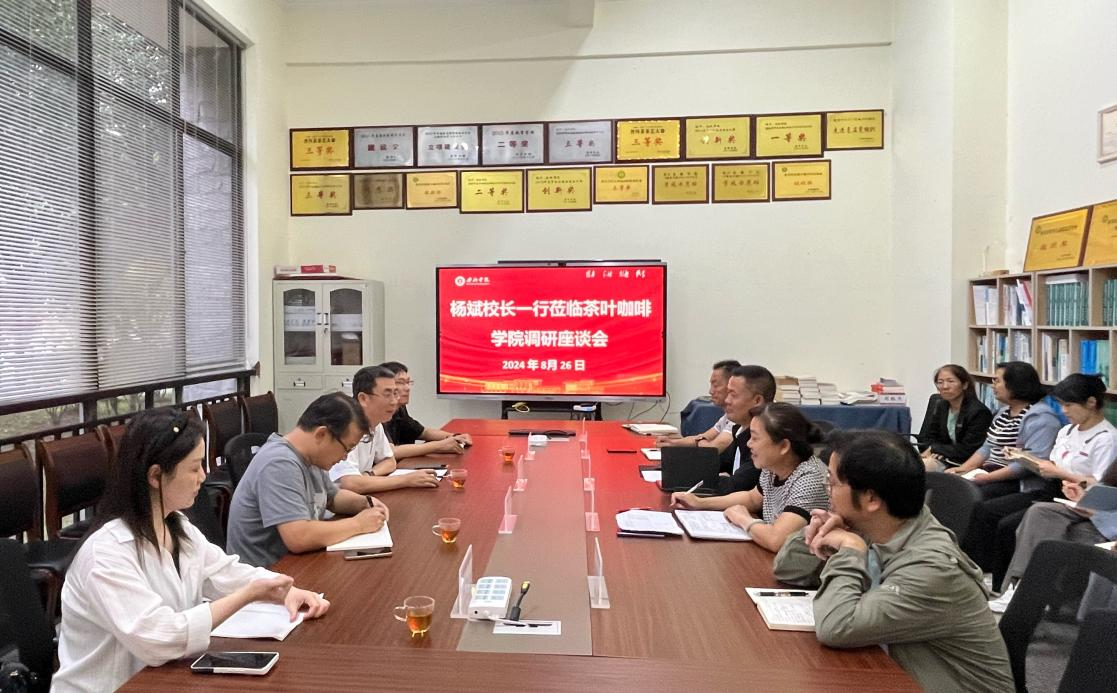 8月26日下午,杨斌校长到茶叶咖啡学院调研,与茶叶咖啡学院领导班子成员及教师代表进行座谈交流。学校党政办、教务处相关人员参加调研。