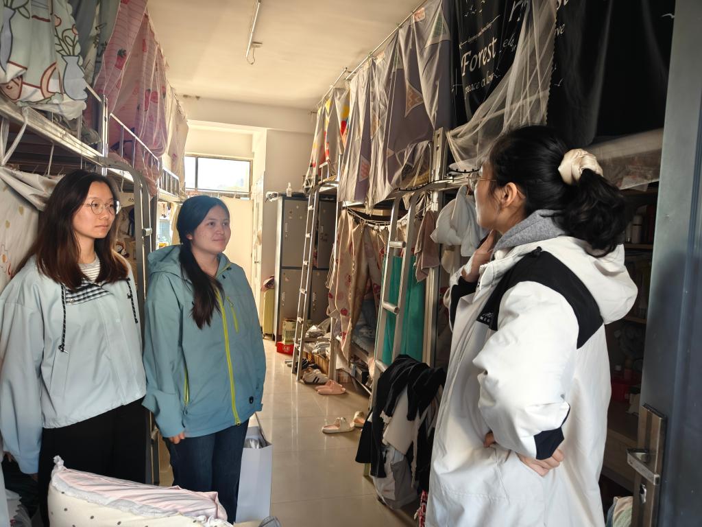 在安全排查的同时,检查组成员同学生们亲切交流,详细询问近期学习进度、课程掌握情况及学业规划,倾听学生在学习中遇到的困难与诉求,并结合专业学习特点给予针对性指导。